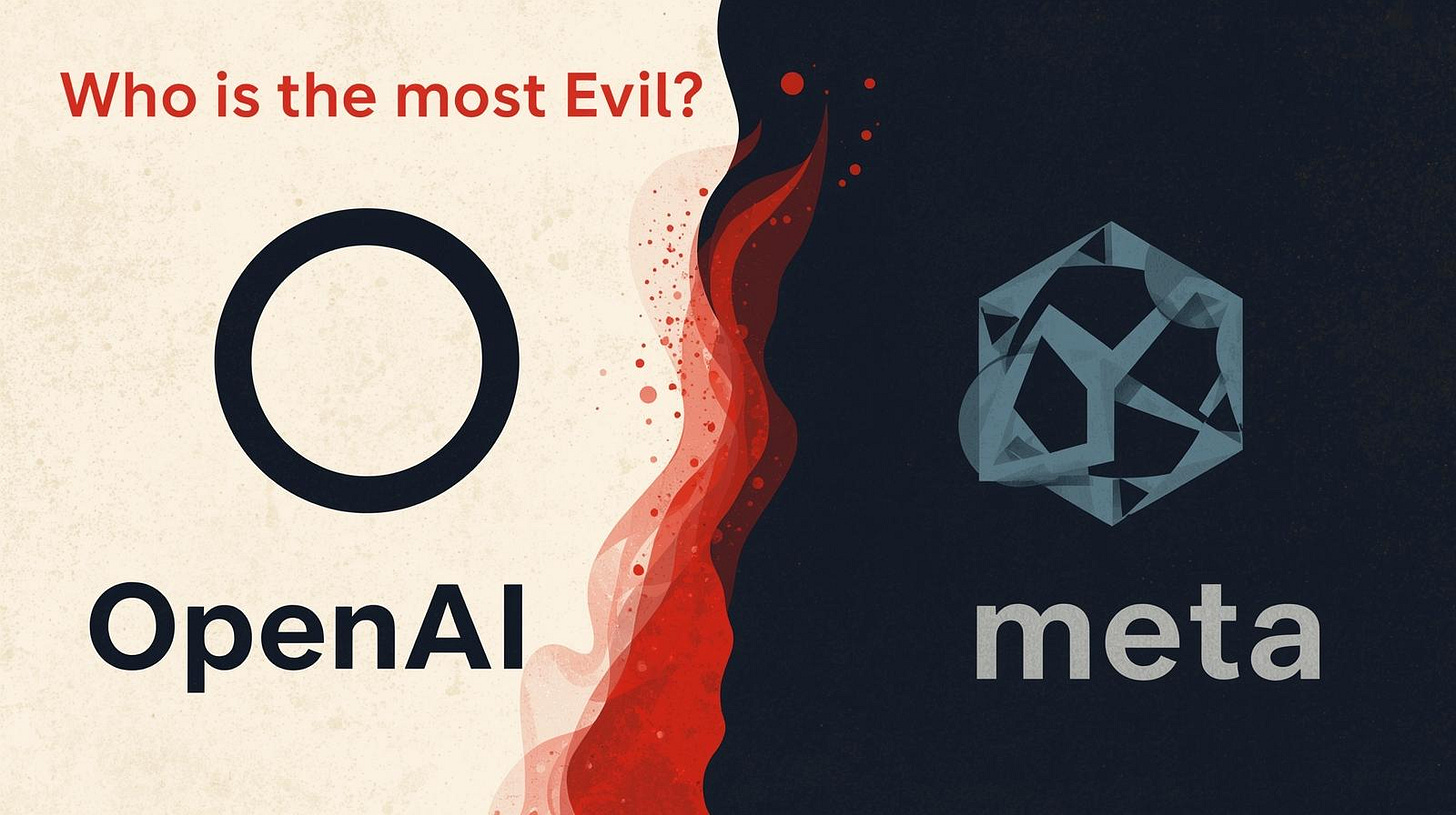 Who is the most Evil OpenAi or Meta - Over the last two weeks Meta are trying to take the crown from Open AI about demonstrating there disregard for human decency as they break more and more rules about data privacy and model safety